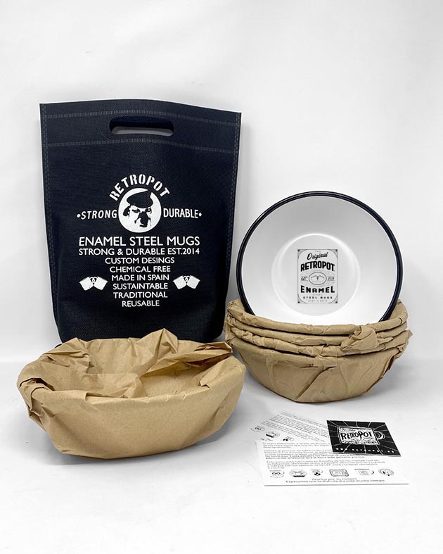 Los boles RETROPOT son de acero esmaltado con doble recubrimiento de esmalte vítreo. Están diseñados y fabricados 100% en España, de forma manual casi en su totalidad, de la misma manera que se hacía hace casi 300 años.